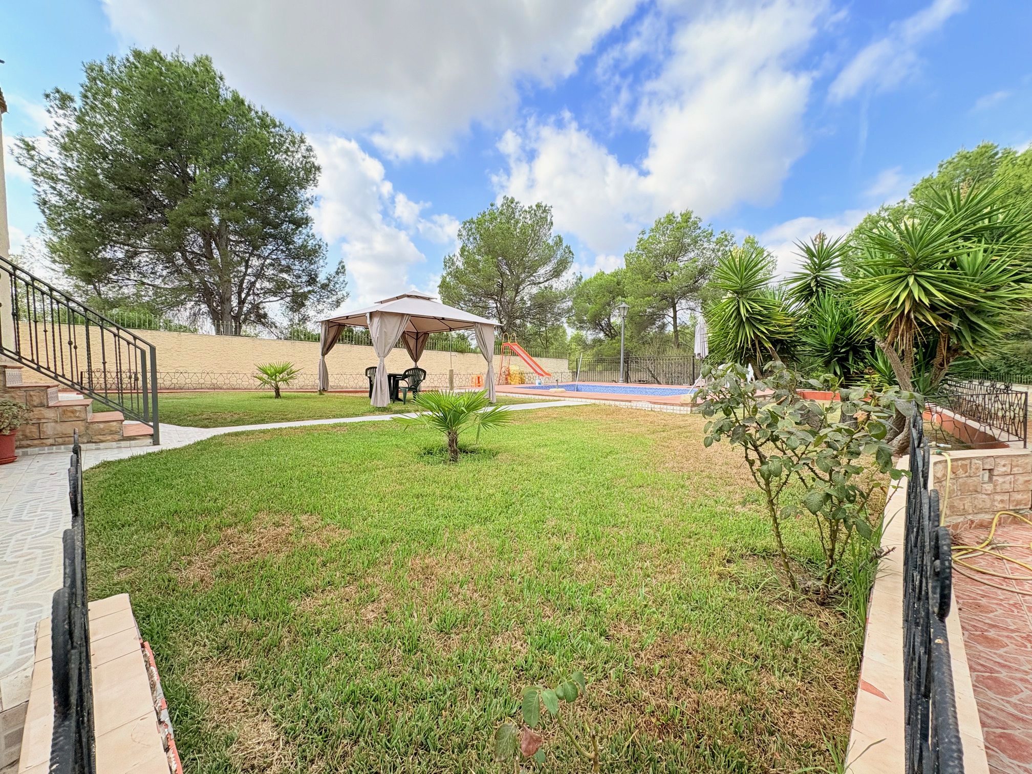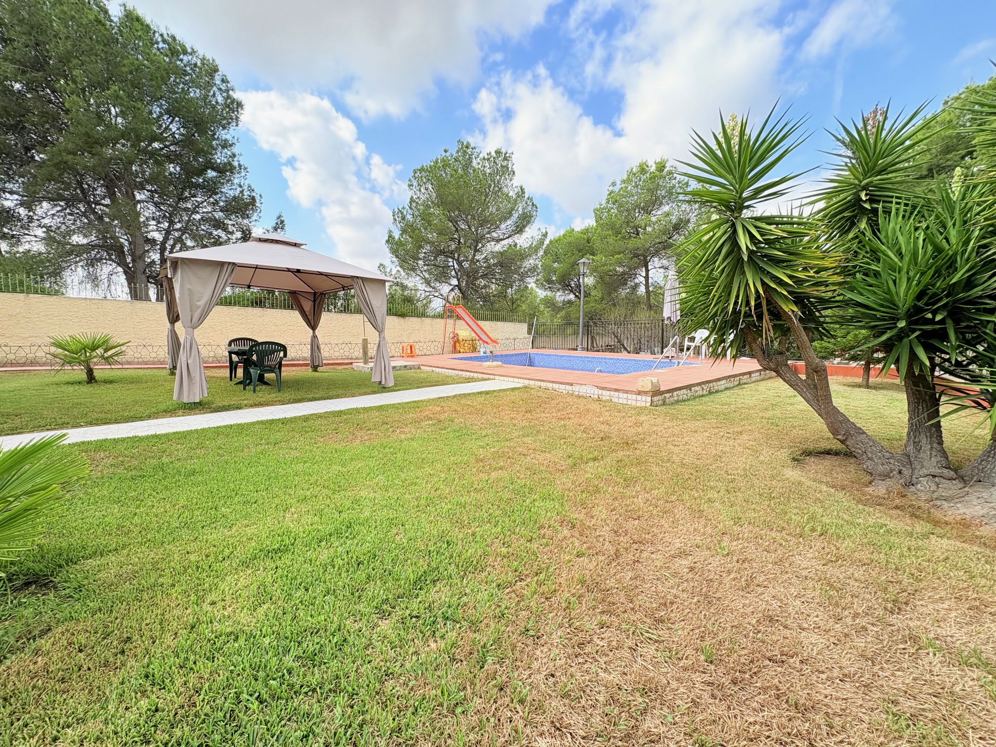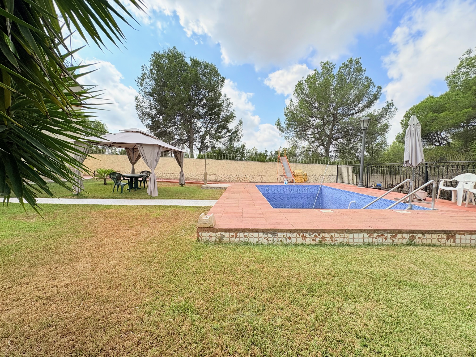 Ref: C461 – Suelo rustico, chalet independiente en Vilamarxant (Valencia), a unos tres kilómetros de la población, camino asfaltado hasta la puerta, la parcela tiene aprox 1.800 m2, donde encontramos paellero-barbacoa cubierto y cerrado con zona de lavadero, agradable piscina con depuradora y preciosa zona ajardinada, además de tierra campa para cultivar lo que cada uno desee