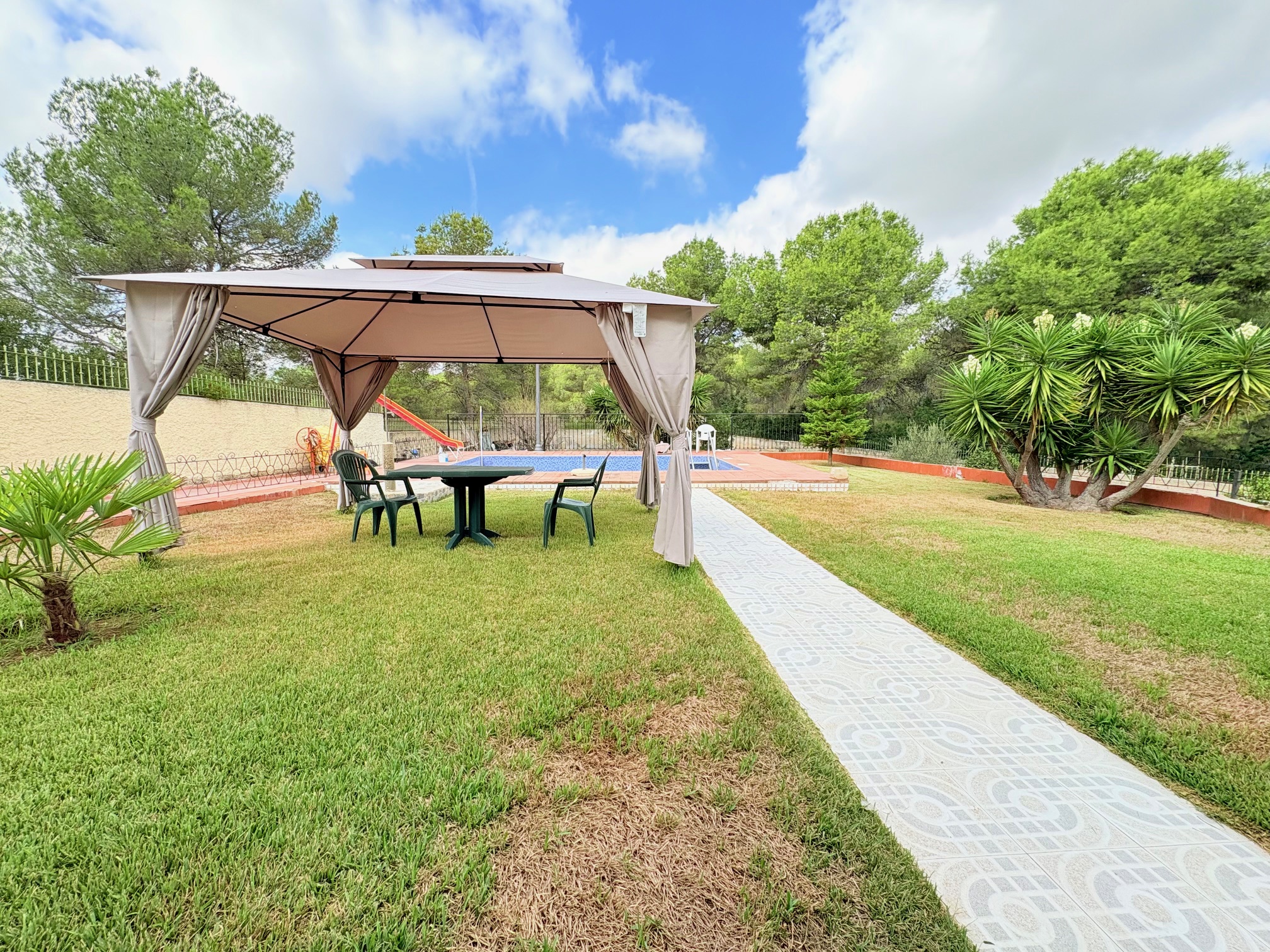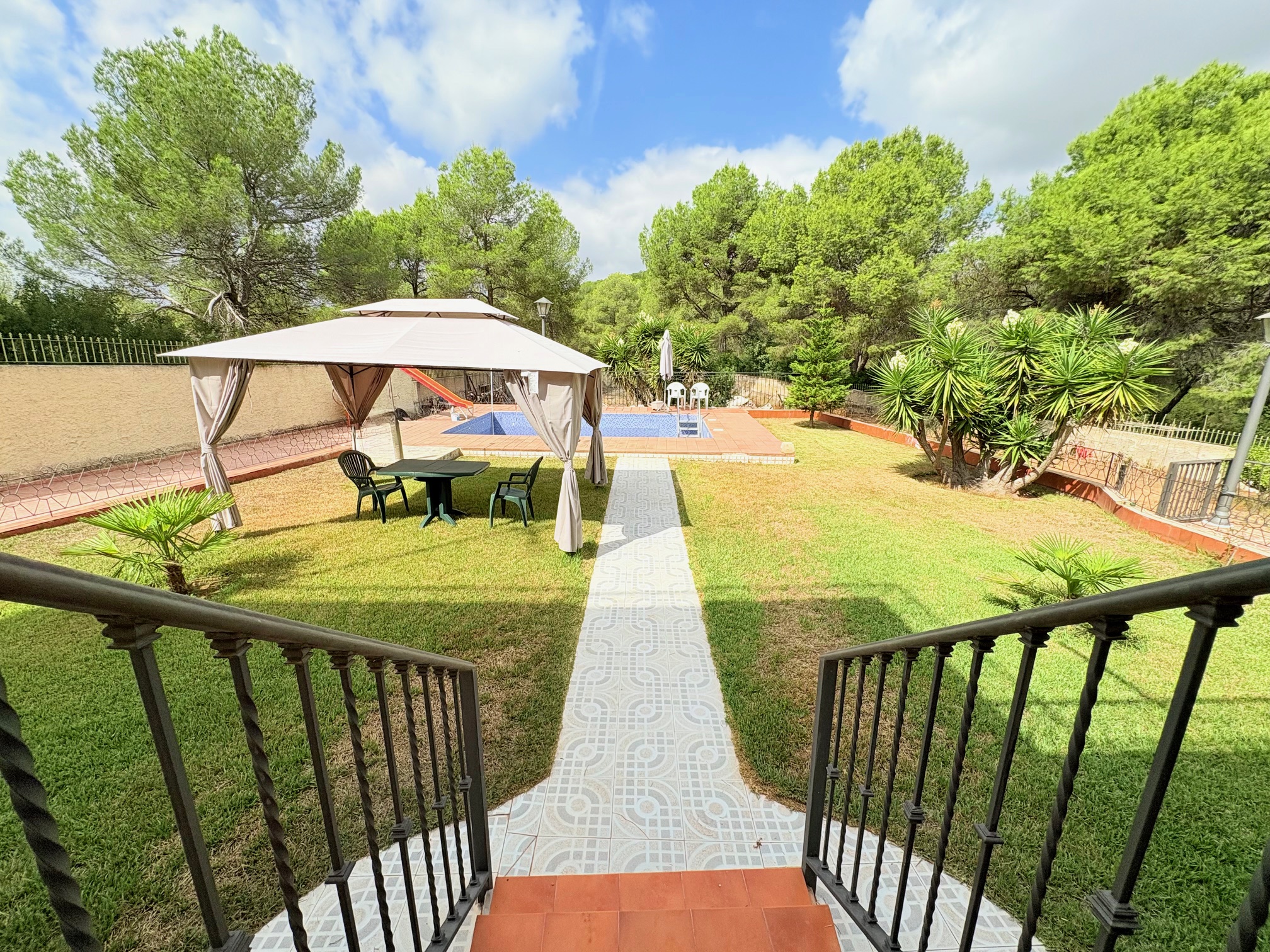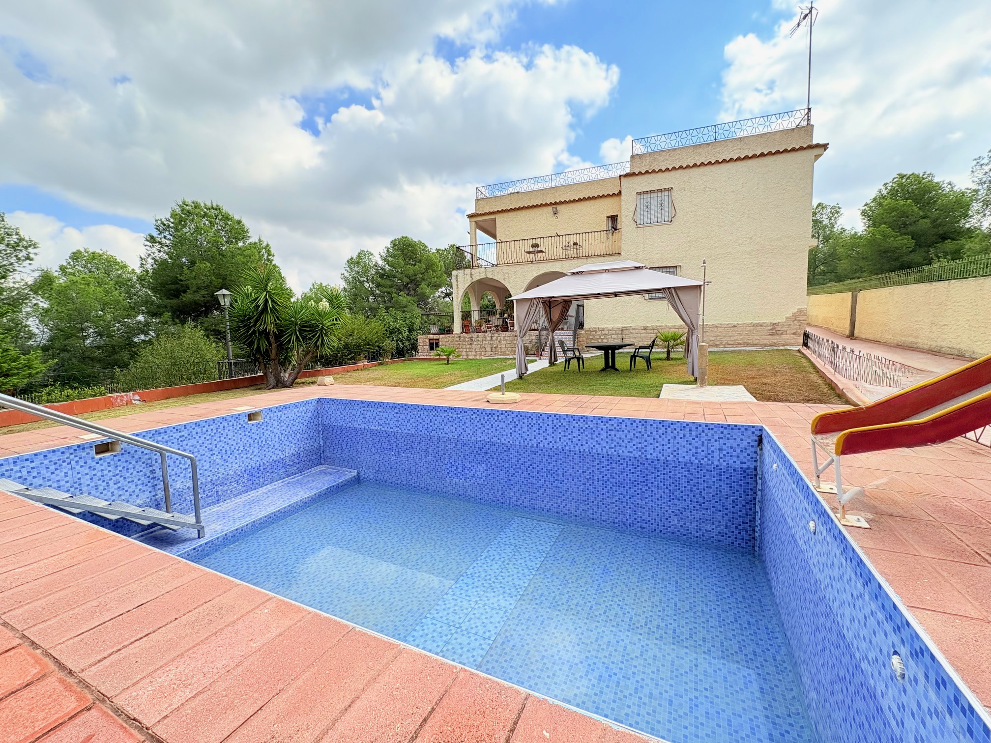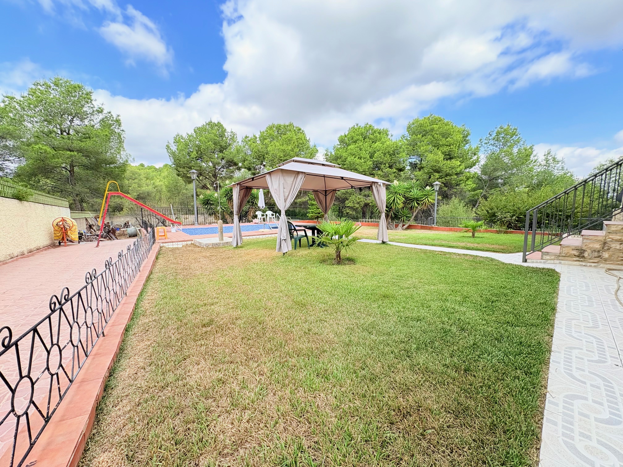 Ref: C461 – Suelo rustico, chalet independiente en Vilamarxant (Valencia), a unos tres kilómetros de la población, camino asfaltado hasta la puerta, la parcela tiene aprox 1.800 m2, donde encontramos paellero-barbacoa cubierto y cerrado con zona de lavadero, agradable piscina con depuradora y preciosa zona ajardinada, además de tierra campa para cultivar lo que cada uno desee