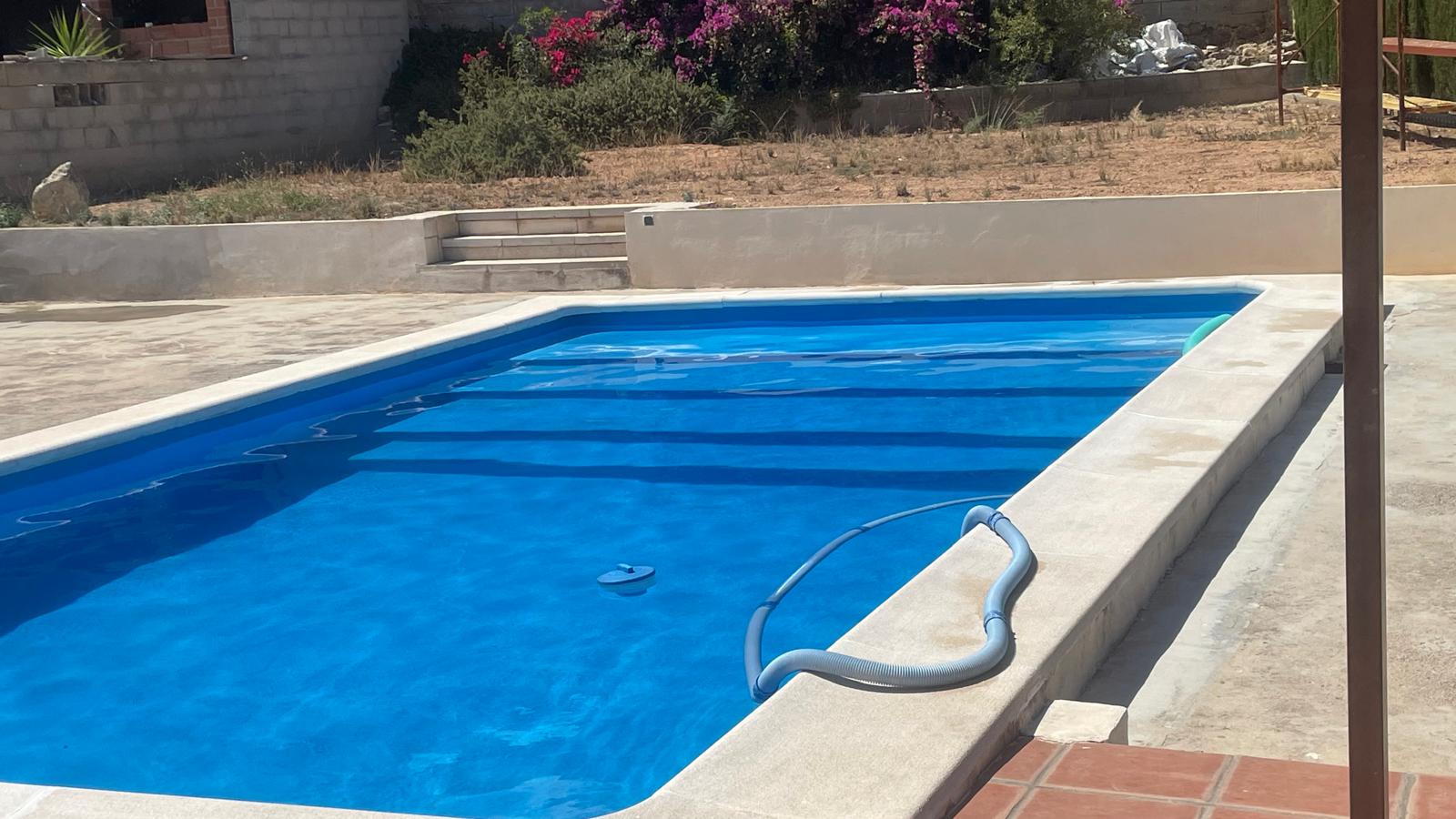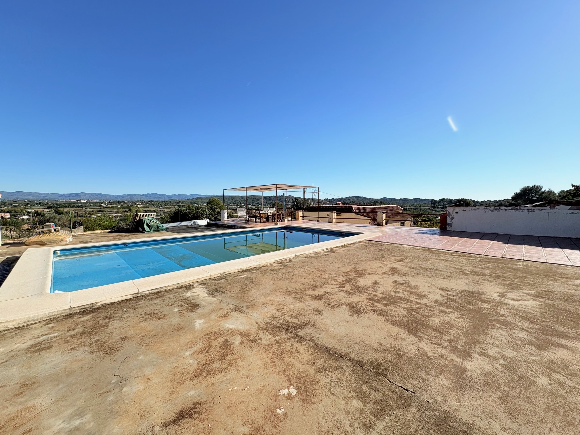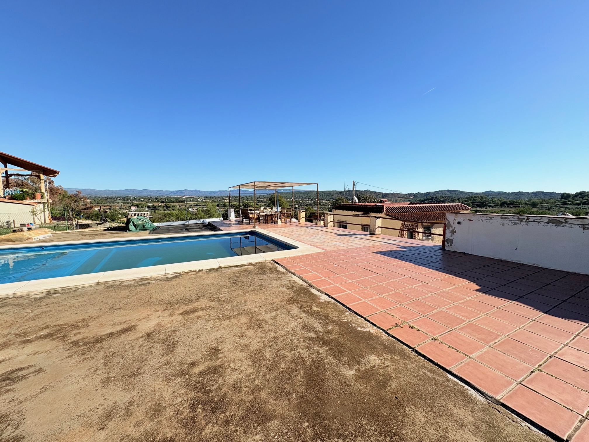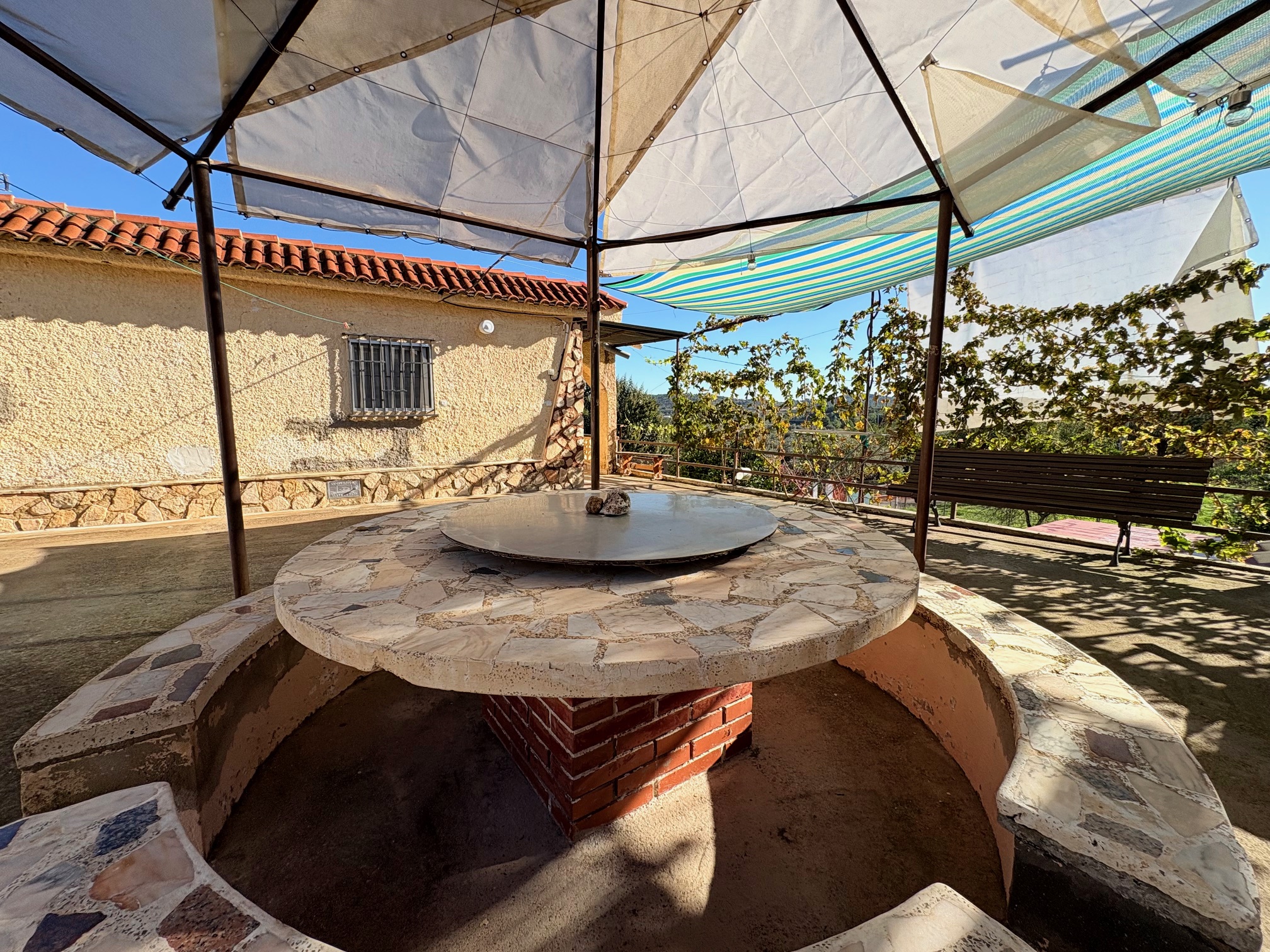 La zona de piscina es el lugar perfecto para relajarse y disfrutar del sol, rodeado de una amplia terraza con vistas espectaculares. Además, la parcela cuenta con una zona de huerta para aquellos que disfrutan de cultivar sus propios productos.