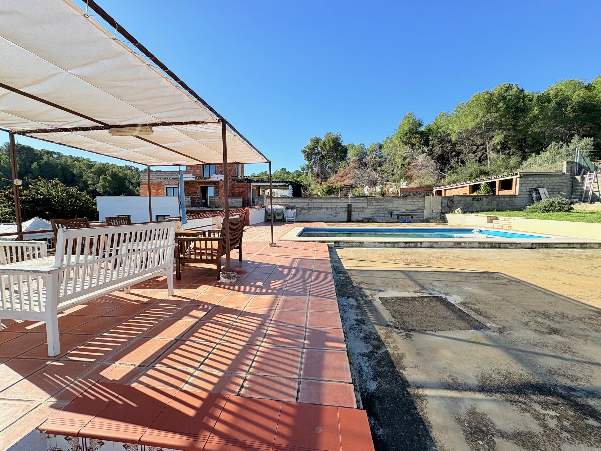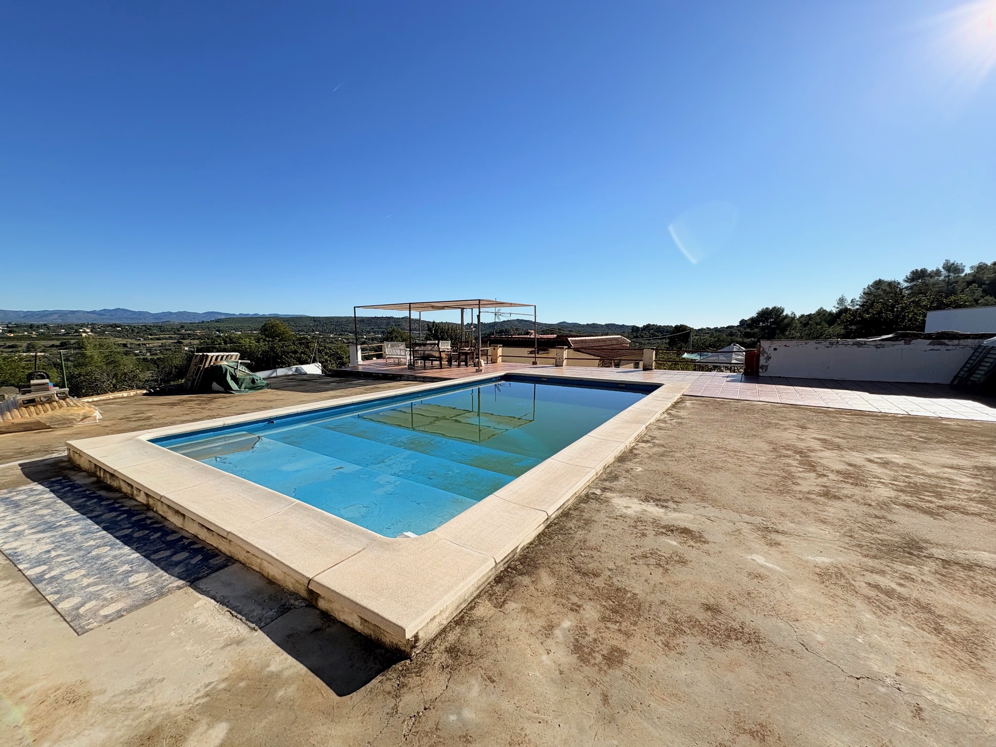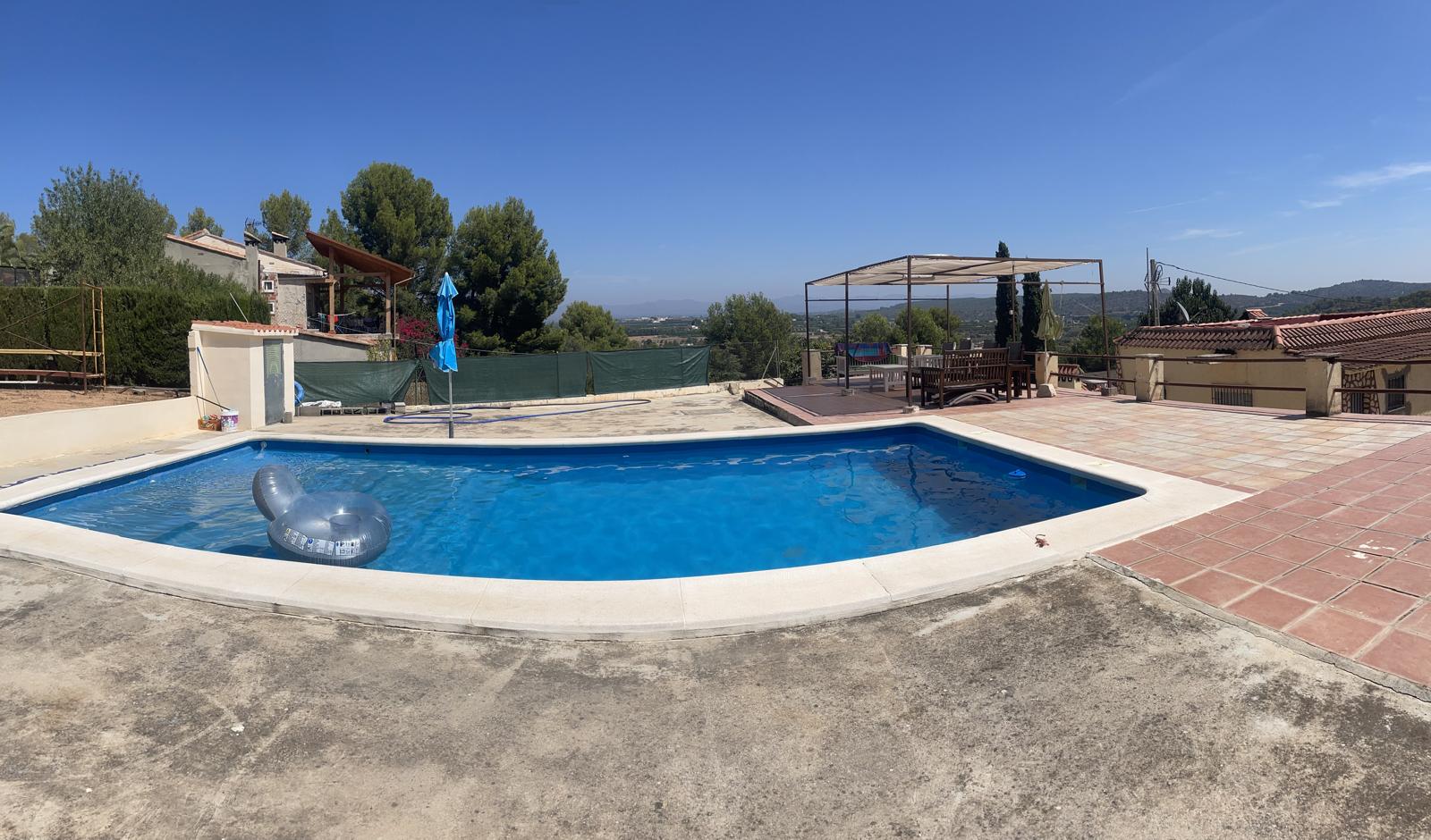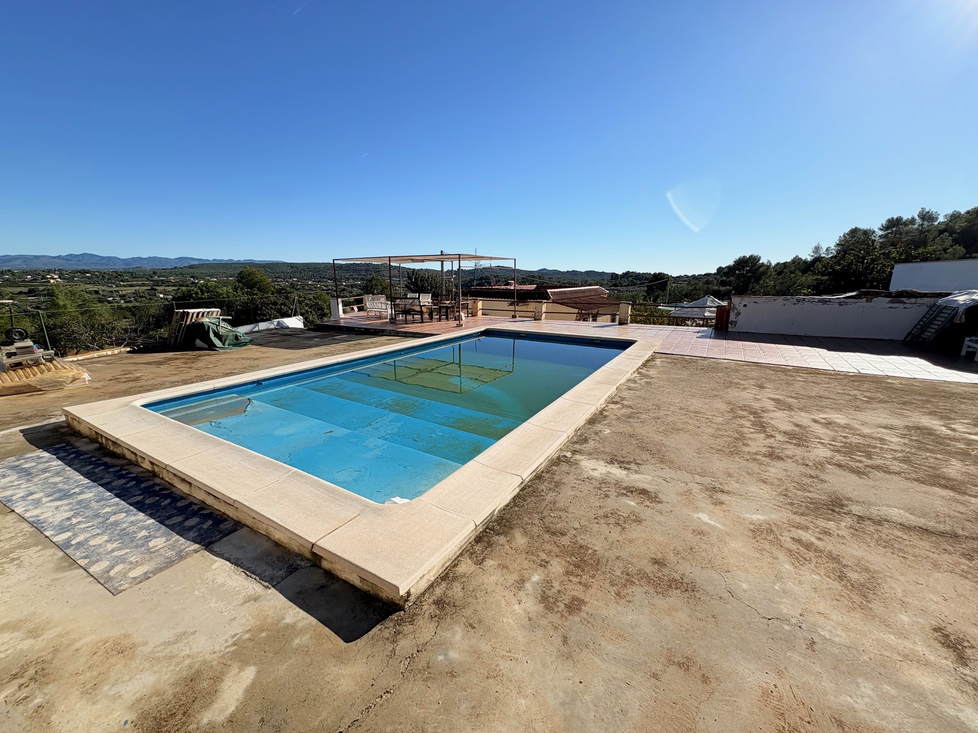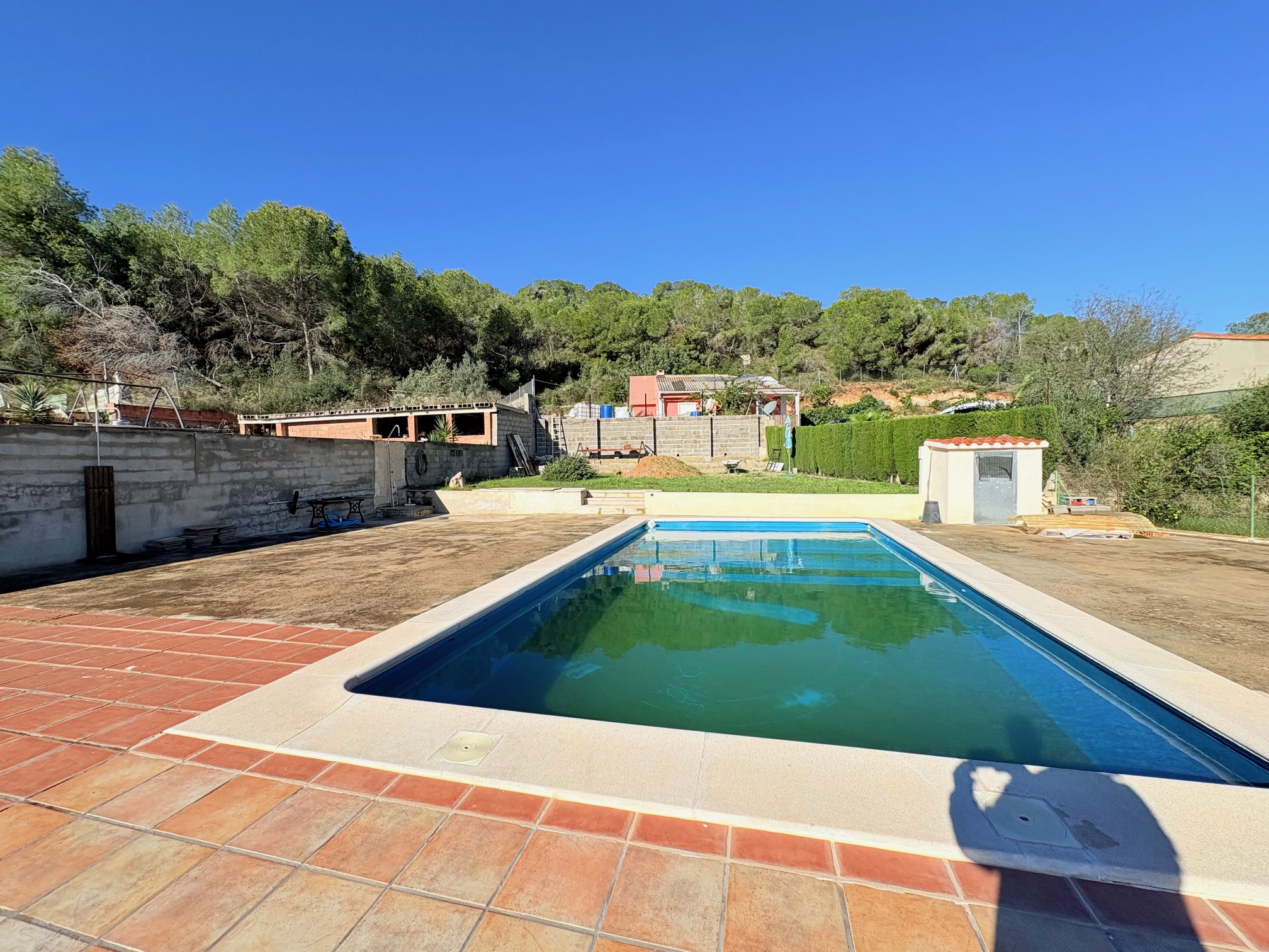 La zona de piscina es el lugar perfecto para relajarse y disfrutar del sol, rodeado de una amplia terraza con vistas espectaculares. Además, la parcela cuenta con una zona de huerta para aquellos que disfrutan de cultivar sus propios productos.